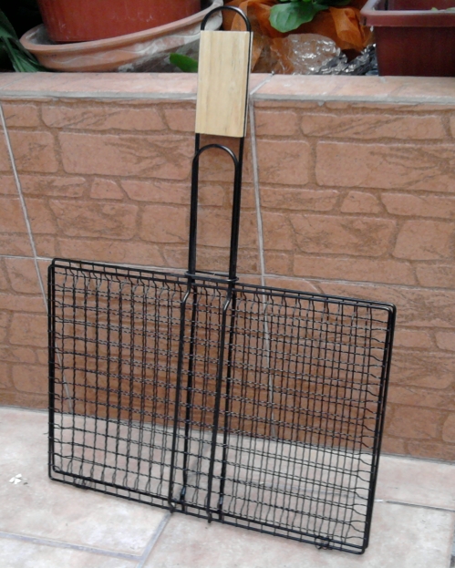 * Σχάρα διπλή με ξύλινο χέρι και πόδια 33 Χ 40